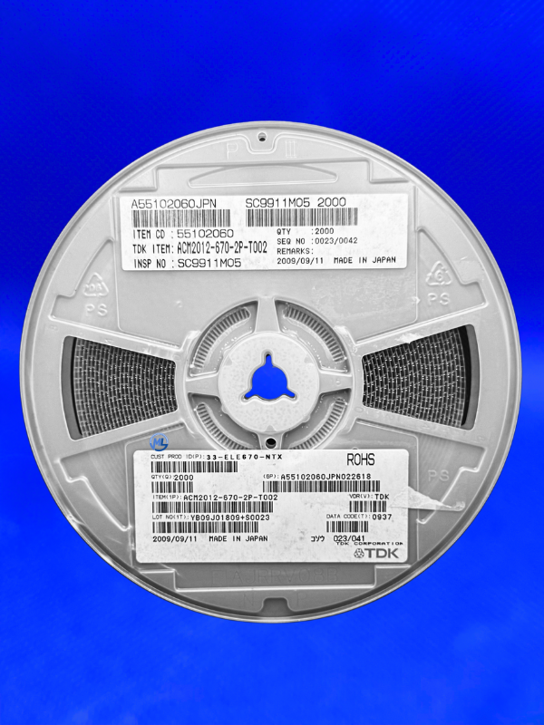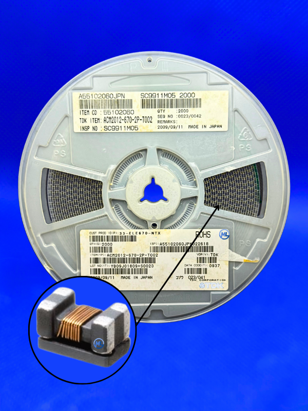 MODELO: BOBINA DE CHOQUE FILTRO CÓDIGO: 67R 50V 500MA 100MHZ 0805 ENCAPSULAMENTO: SMD ACM2012-670-2P-T002 MARCA: TDK