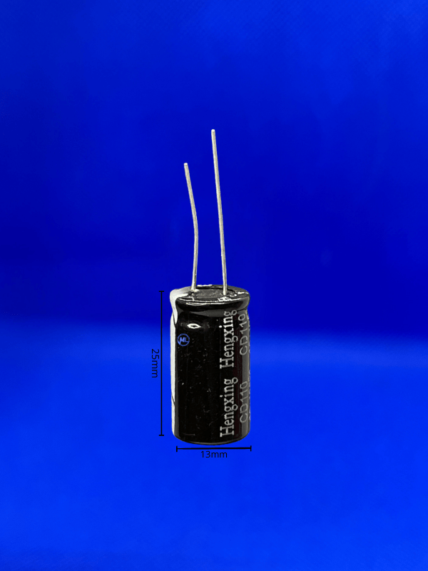 MODELO: CAPACITOR ELETROLÍTICO CÓDIGO: 330UF/100V RD. 105º 13X25MM TEMPERATURA: 105º MARCA: HENGXING