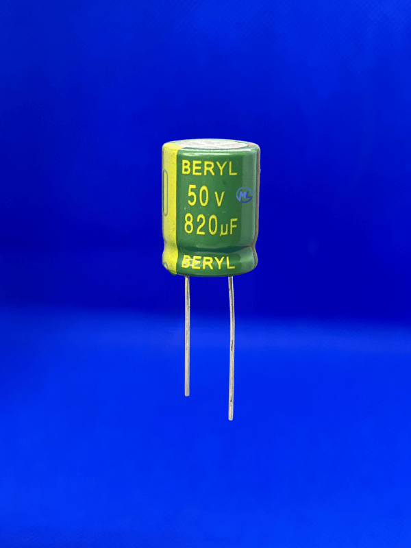 MODELO: CAPACITOR ELETROLÍTICO CÓDIGO: 820UF/50V RD. 105º 16X20MM TEMPERATURA: 105º MARCA: BERYL